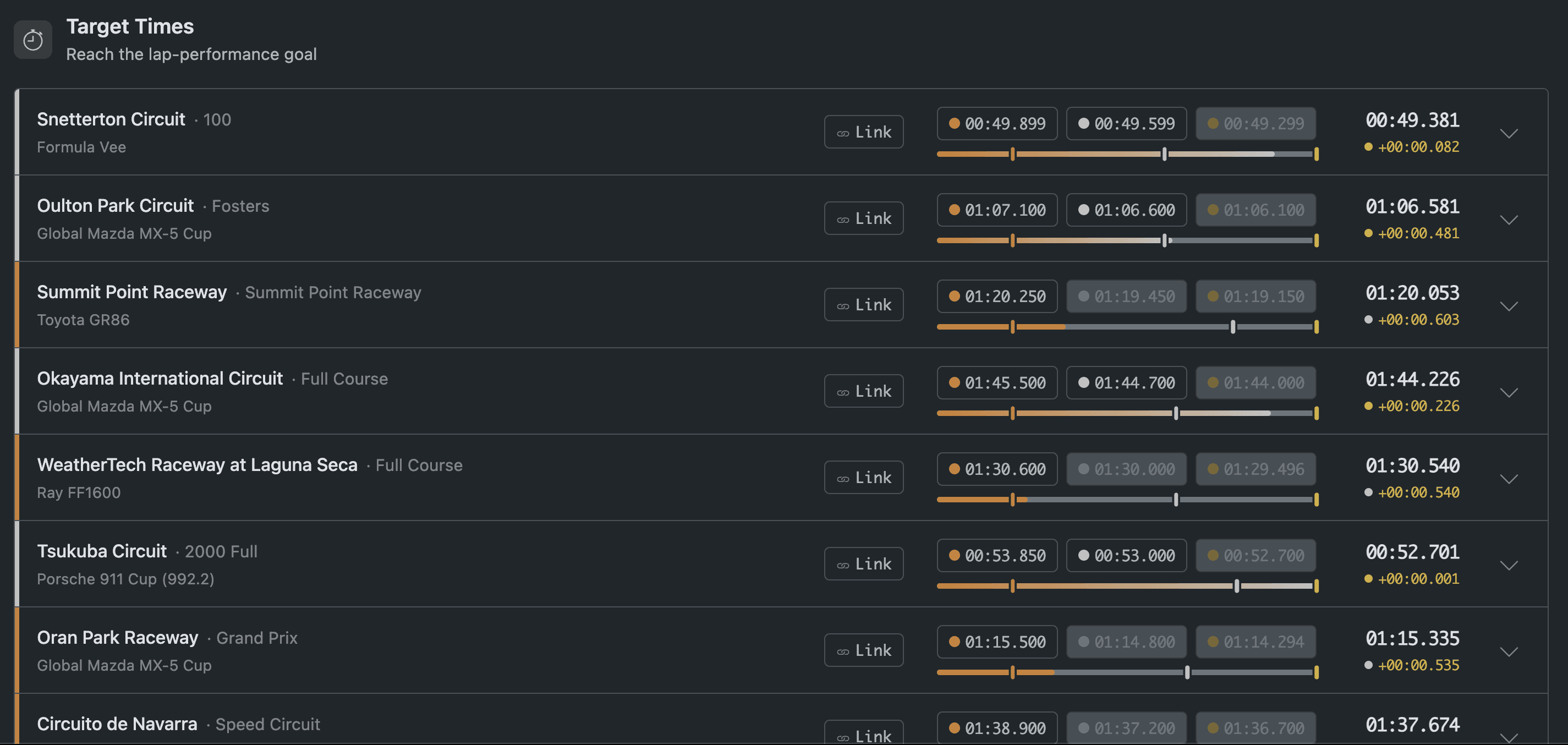 Put your skills to the test through iRacing time trials and weekly challenges. Earn medals, graduate from the Academy, and unlock lap guides built from real race combos.